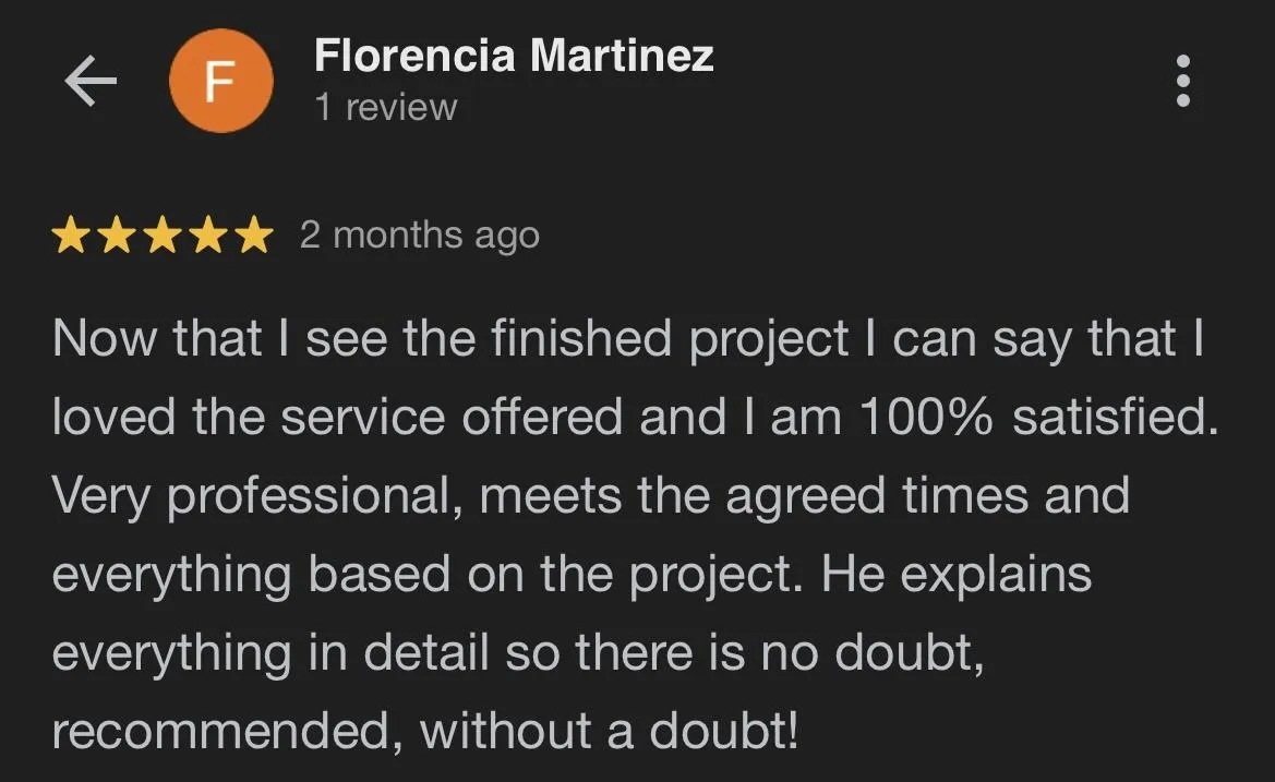 My experience with Vicente was exceptional. He combined professionalism, clear communication, and skill to exceed my expectations. I strongly endorse him for anyone seeking reliable, top quality service, and look forward to future collaborations.